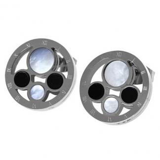 STAINLESS STEEL EARRINGS IN CIRCLE SHAPE WITH 2 SHELL & 2 BLACK ENAMEL CIRCLE IN S/S COLOR (set with SN569)