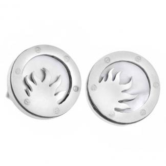 STAINLESS STEEL EARRINGS IN CIRCLE SHAPE WITH FIRE & SCREW PATTERN WITH SHELL IN S/S COLOR (Set with SN575)