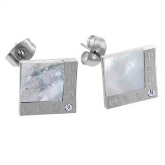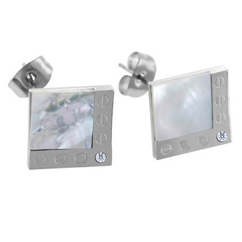 STAINLESS STEEL EARRINGS IN SQUARE SHAPE WITH SHELL & 1 CZ WITH SCREW PATTERN IN S/S COLOR (Set with SN576)