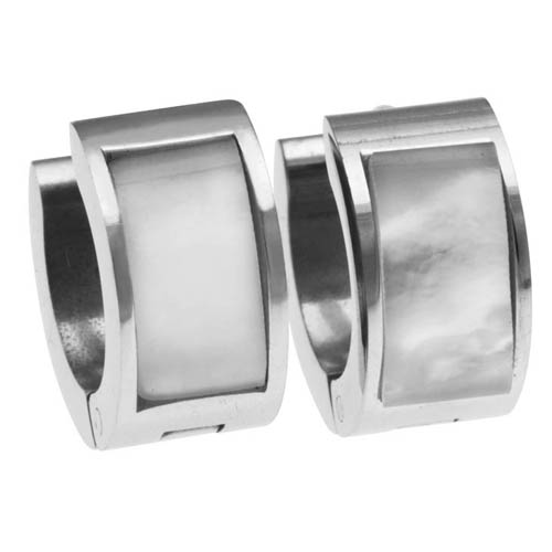 STAINLESS STEEL HUGGIE EARRINGS IN CIRCLE SEHAPE WITH PEARL ALL IN S/S COLOR