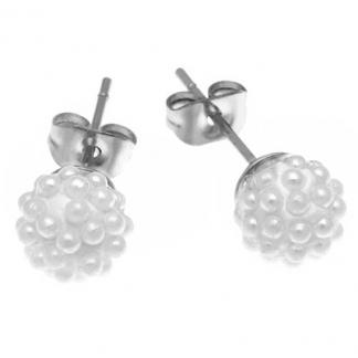 STAINLESS STEEL EARRINGS WITH PEARL IN SPHERE SHAPE IN S/S COLOR