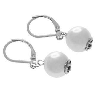 STAINLESS STEEL EARRINGS PEARL IN SPHERE SHAPE IN S/S COLOR