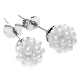 STAINLESS STEEL EARRINGS WITH PEARL IN SPHERE SHAPE WITH BUTTERFLY BUCKLE IN S/S COLOR