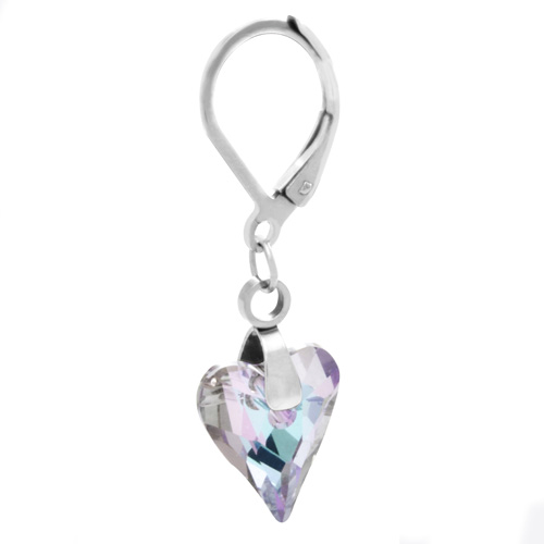 STAINLESS STEEL EARRINGS WITH S/S HOOK CRYSTAL IN HEART SHAPE