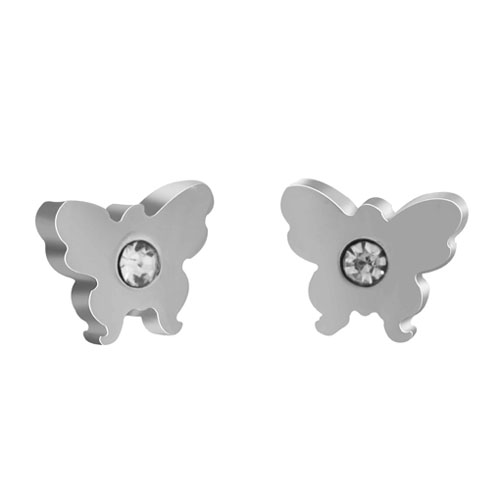 STAINLESS STEEL EARRINGS IN BUTTERFLY SHAPE WITH 1 CZ