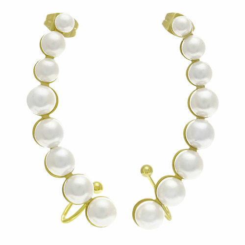 STAINLESS STEEL STUD DROP EARRING WITH SINGLE LINE OF 8 PEARLS ALL IPG COLOR