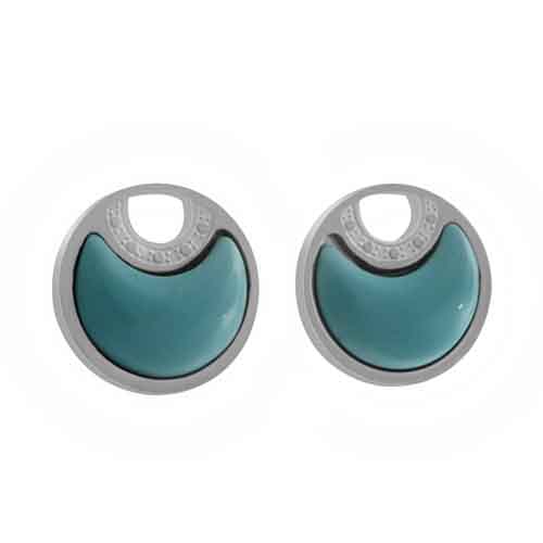 STAINLESS STEEL STUD EARRING CIRCLE SHAPE WITH PATTERN & 3/4 MOON SHAPE INSERT IN TURQUOISE ALL IN S/S COLOR