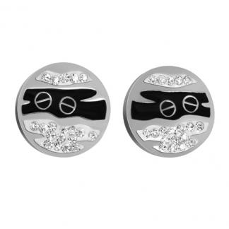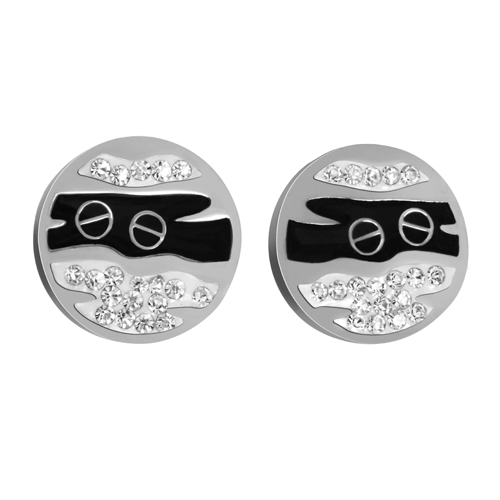 STAINLESS STEEL EARRINGS WITH BLACK ENAMEL AND WHITE CZ IN SS COLOR