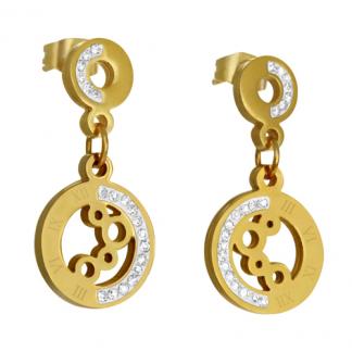 STAINLESS STEEL EARRINGS ALL IN IPG COLOR IN TWO CIRCLES SHAPES WITH CRYSTAL ALL IN IPG COLOR.