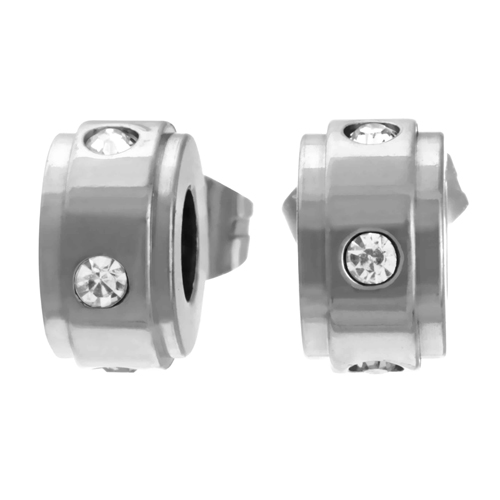 STAINLESS STEEL EARRINGS IN CIRCLE SHAPE IN S/S COLOR WITH CZ.