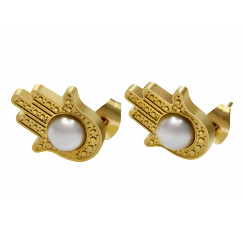 STAINLESS STEEL EARRINGS IN SHAPE OF HAND WITH 1 PEARL ALL IN IPG COLOR