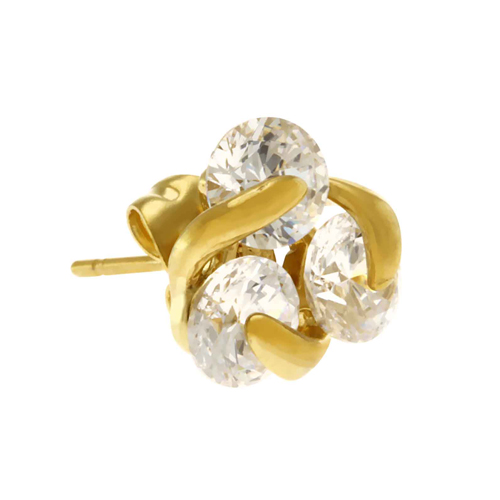 STAINLESS STEEL EARRINGS WITH 3 CRYSTALS ALL IN IPG COLOR.