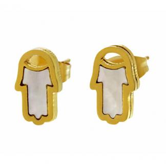 STAINLESS STEEL EARRINGS IN SHAPE OF HAND WITH ONE SHELL ALL IN IPG COLOR