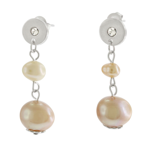 STAINLESS STEEL EARRING WITH RIVER PEARL IN PINK & WHITE COLOR