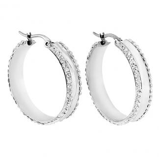 STAINLESS STEEL EARRING IN ROUND SHAPE WITH 2 LINE CZ IN SS COLOR