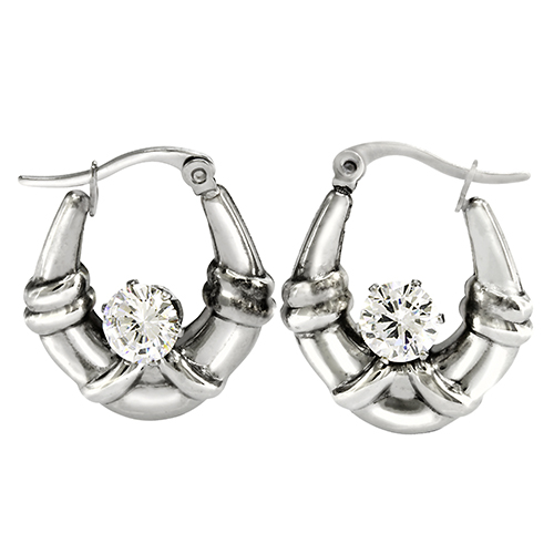 STAINLESS STEEL HOLLOW EARRING WITH ONE CZ IN THE CENTER