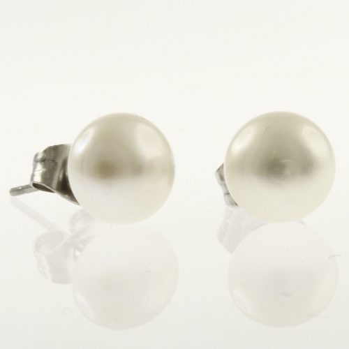 STAINLESS STEEL EARRING WITH RIVER PEARL IN WHITE COLOR