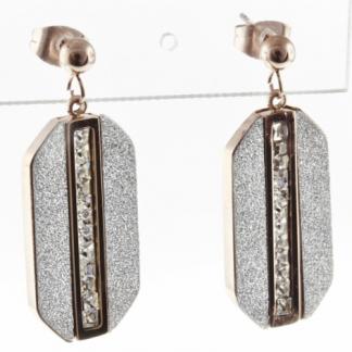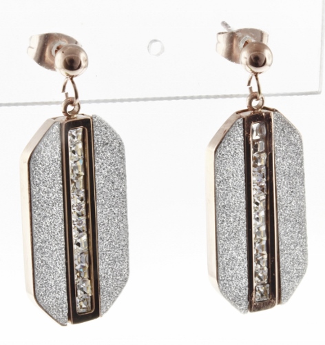STAINLESS STEEL EARRING ALL IN IPR COLOR WITH WHITE CZ AND SANBLAST