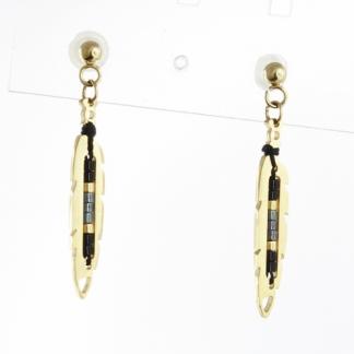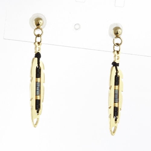 STAINLESS STEEL EARRING IN IPG COLOR. WITH BEADS AND IN LEAF SHAPE