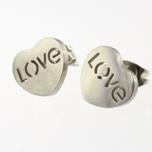 STAINLESS STEEL EARRING IN HEART SHAPE WITH LETTER LOVE