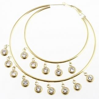 STAINLESS STEEL EARRING WITH HANGING CHARMS AND CZ