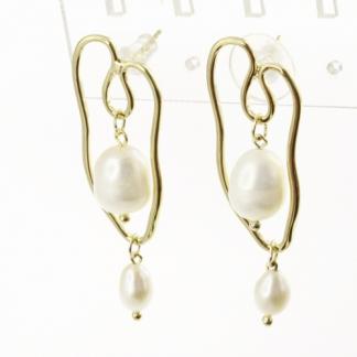 STAINLESS STEEL DANGLES EARRINGS WITH PEARL IN IPG COLOR