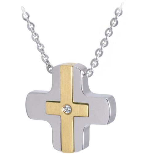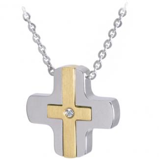 Stainless Steel Necklace In IPG two tone With CZ