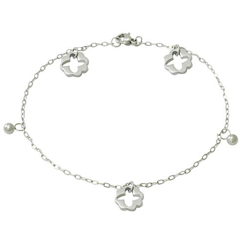 Stainless Steel Necklace with Anklet in heart shape with 2 balls In steel color