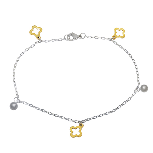 Stainless Steel Necklace 3 IPG Hanging Charms in Flower Shape and 2 Beads