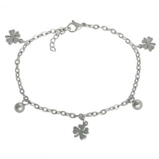 Stainless Steel Necklace In steel color with 2 beads and 3 clover charms