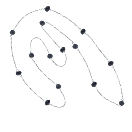 Stainless Steel Necklace In steel color with 14 black crystals