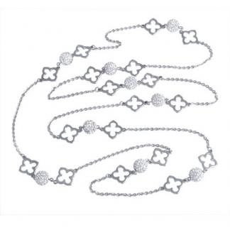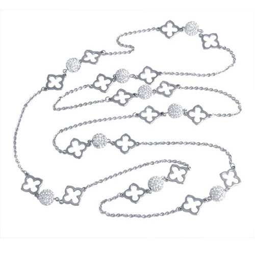 STAINLESS STEEL NECKLACE WITH 9 CZ BALLS AND 18PCS OF STAINLESS STEEL LEAVES