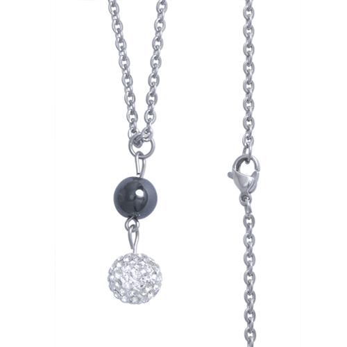 STAINLESS STEEL NECKLACE WITH STAINLESS STEEL BALL AND 1 CZ BALL