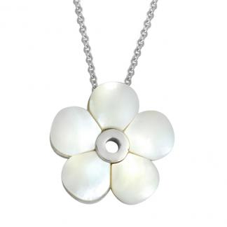 STAINLESS STEEL NECKLACE IN ALL S/S COLOR WITH WHITE FLOWER PENDANT IN SHELL