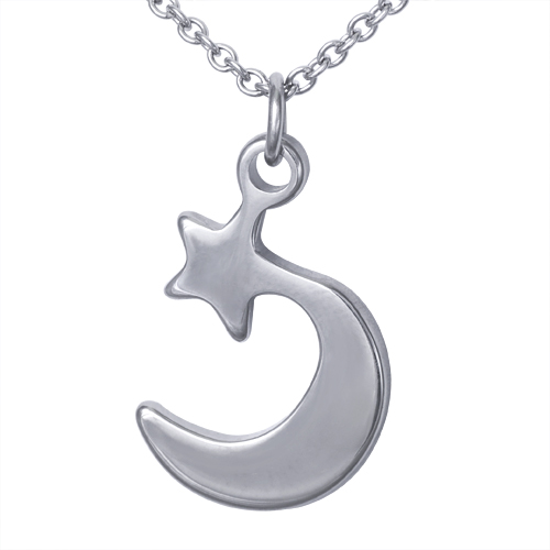 STAINLESS STEEL NECKLACE WITH MOON PENDANT IN S/S COLOR