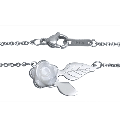 STAINLESS STEEL NECKLACE WITH ROSE PENDANT IN S/S COLOR