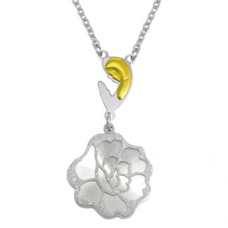 STAINLESS STEEL NECKLACE IN IP ROSE 2 TONE WITH ROSE AND MOTHER MARY PENDANT SANDBLAST