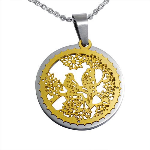 STAINLESS STEEL NECKLACE WITH BIRDS PENDANT IN IPG TWO TONE