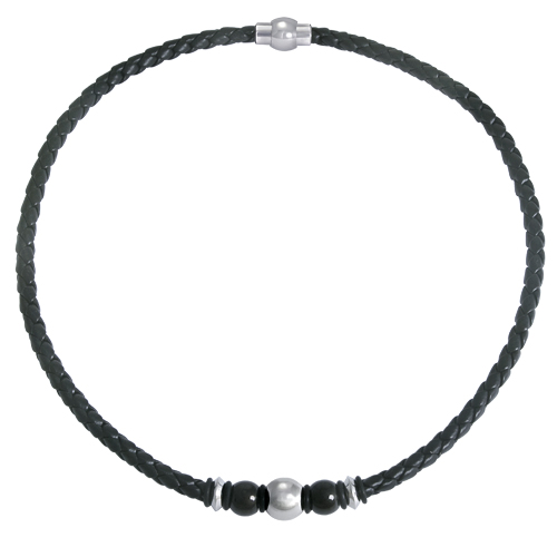 L=55CM TH=5MM S/S BEAD DIA= 12MM BLACK BEAD DIA=10MM