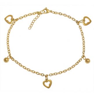 STAINLESS STEEL ANKLET WITH 3 HEART CHARMS AND 2 S/S BEADS ALL IN IPG