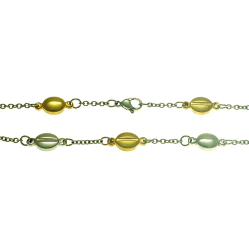 STAINLESS STEEL PENDANT NECKLACE WITH 3 IPG BEADS & 2 S/S BEADS IN IPG TWO TONE