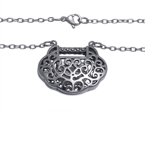 STAINLESS STEEL PENDANT NECKLACE WITH HANDBAG SHAPE PENDANT WITH DELICATE PATTERN