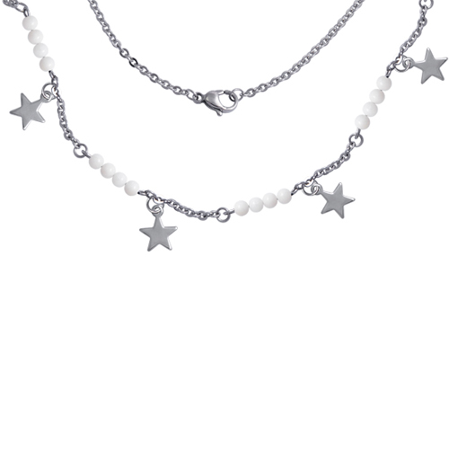 STAINLESS STEEL NECKLACE WITH 4 SET WHITE PEARL WITH 4 CHARM IN STAR SHAPE