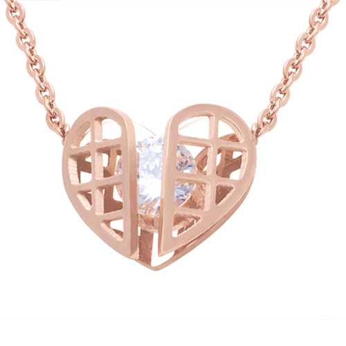 STAINLESS STEEL PENDANT NECKLACE IPR WITH HEART & WINDOW PENDANT WITH 1 BIG CZ