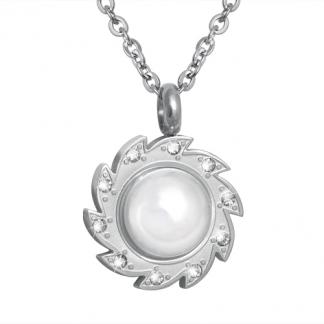STAINLESS STEEL NECKLACE WITH WHIRLPOOL PENDANT & SYNTHETIC PEARL & 10 CZ