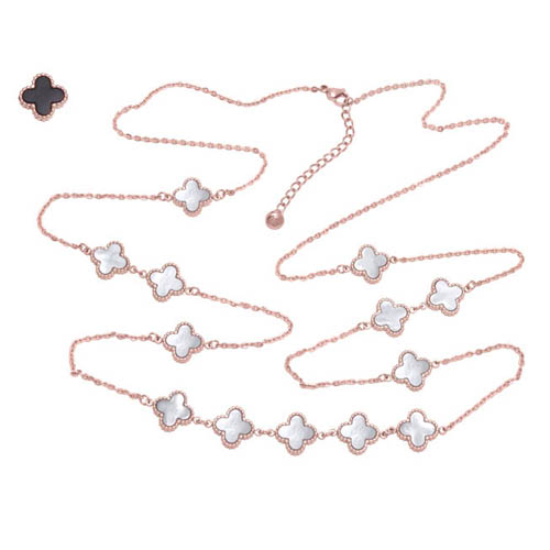 STAINLESS STEEL NECKLACE IPR WITH FLOWER TWO SIDES (SHELL & BLACK ENAMEL)