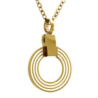 STAINLESS STEEL NECKLACE WITH CIRCLE SHAPE CHARMS WITH WHITE EMANELS IN IPG COLOR