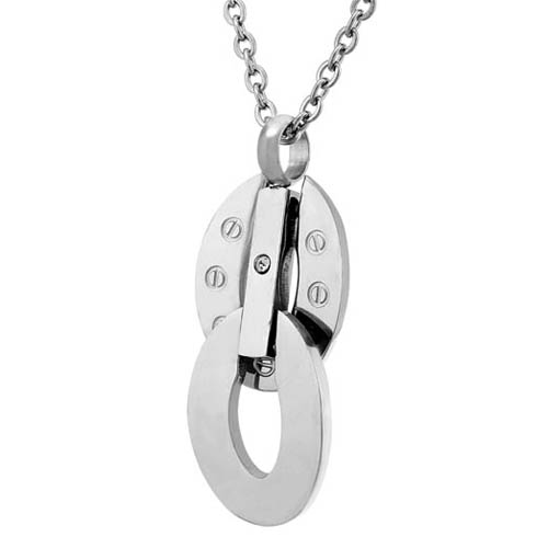 STAINLESS STEEL NECKLACE WITH TWO OVAL WITH SCREW PATTERN
