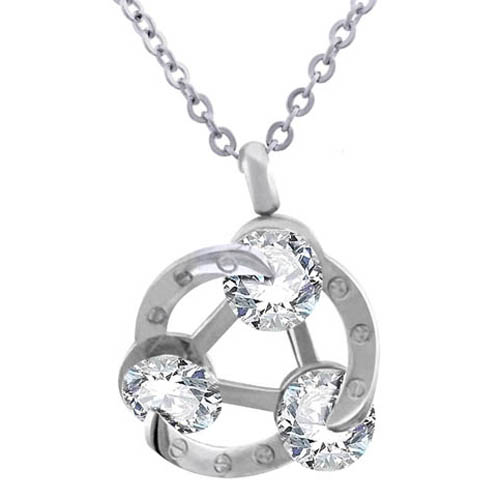 STAINLESS STEEL NECKLACE WITH CIRCLE PENDANT WITH 3 CZ ALL IN S/S COLOR