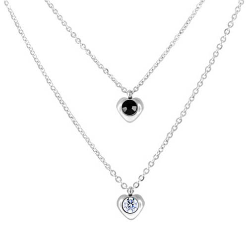 STAINLESS STEEL NECKLACE WITH HEART PENDANT WITH WHITE / BLACK CZ